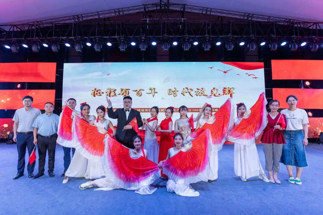 在迎接建党100周年之际,2021年6月28日晚,空港经开区(硕放街道)“征程硕百年,时代放光辉”庆祝中国共产党成立100周年主题晚会在硕放街道文化睦邻中心广场隆重举行。空港经开区(硕放街道)全体党政领导出席晚会,商学院(空港物流学院)党总支书记汤兴荷、副书记杨玲燕应邀参加晚会,我院选送的歌伴舞《万疆》参与现场晚会表演,获得现场领导和观众的一致好评。