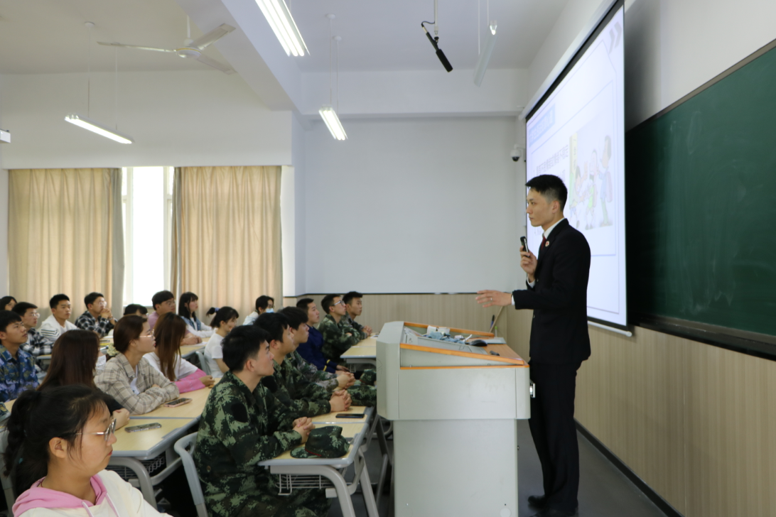 紧接着,朱桢涛讲述了如何预防犯罪,诚信与自律的可贵以及交友不慎而误入歧途的案例,提醒大家要慎重再慎重。大家积极响应,提出问题,例如酒吧里鱼龙混杂,不慎就会沾染毒品,发布舆论也是不正确的行为,网络不是法外之地。无论是在哪里都应遵法、守法,既避免伤害别人又懂得如何用法律保护自己的合法权益。在今后的生活中要做到自觉遵纪守法,做一个知法守法的人,朱桢涛告诉同学们:“不是每一次对秩序和规则的破坏都有惨痛的教训,但每一次对踩到秩序和规则底线的暧昧态度都会是压在正常社会运行秩序上的那一根稻草。”同时希望各位学弟学妹能知法守法,在规则和秩序下书写属于自己的人生篇章。