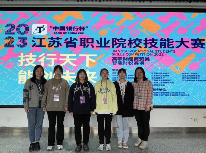 2023年3月8-9日,由江苏省教育厅主办的2023年江苏省职业院校技能大赛高职财经商贸大类“智能财税”技能项目在南京铁道职业技术学院举行。我校商学院学生团队金宇菲、赵雅静、陈育新,周扬兰四位学子,在陆珂、徐颖老师的指导下不畏强手,奋力拼搏,从42支代表队168名选手中脱颖而出,获得2023年江苏省职业院校技能大赛”智能财税”项目一等奖第一名的好成绩,实现了商学院在省职业院校技能大赛中一等奖零的突破。