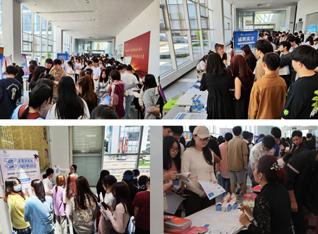 与此同时,场外现场招聘活动也是人潮涌动,气氛热烈。各参会企业认真宣传,同学们积极携带简历与用人单位充分交流沟通,主动了解用人需求,结合自身能力选择合适的单位参加应聘。