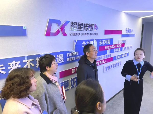 在超信集团,调研团队参观了公司的各个部门,深入了解了公司正在大力发展的传媒部门。在校企双方交谈中,双方就人才培养和输出方面能够充分发挥各自的资源优势,资源共享,进一步推动校企双方更加紧密的合作。